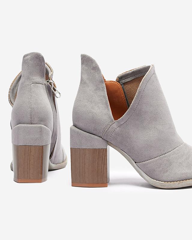 Szare damskie botki na słupku z wycięciami Cintura - Obuwie