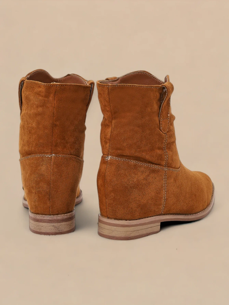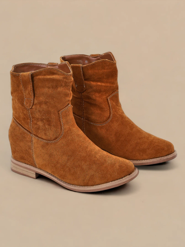 Brązowe botki a'la kowbojki na krytym koturnie Jelluma- Obuwie