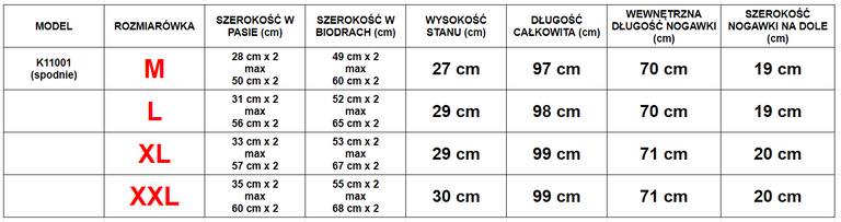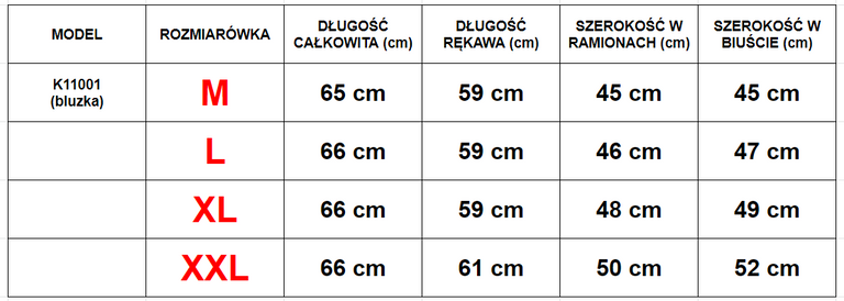 Tabela rozmiarów - przed zakupem sprawdź rozmiarówkę!