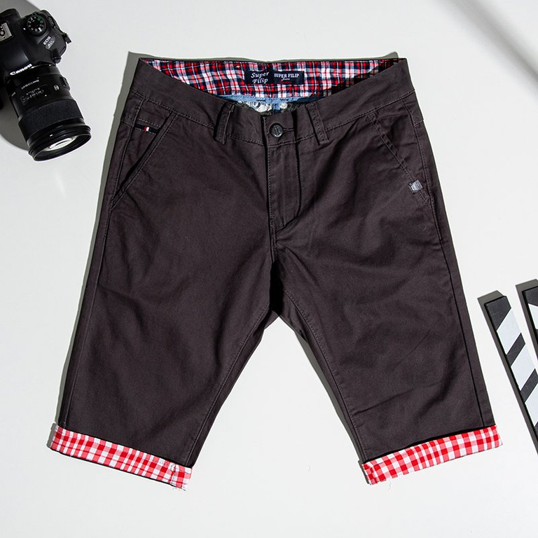 Ciemnoszare męskie spodenki z czerwonymi wstawkami - Odzież