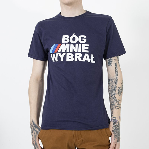 Granatowa bawełniana koszulka męska z printem - Odzież
