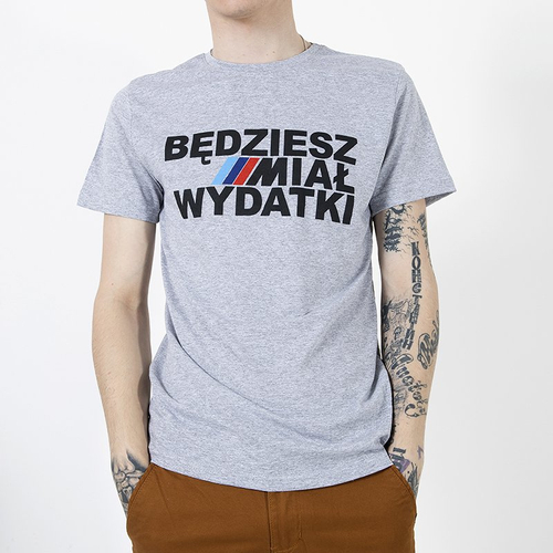 Szara bawełniana koszulka męska z printem - Odzież