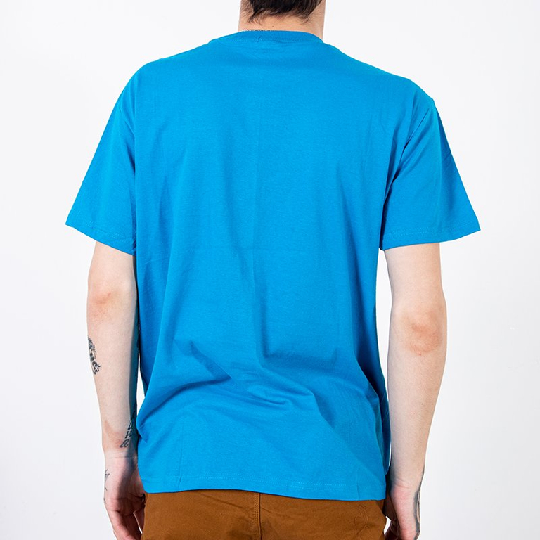 - Klasyczny męski t-shirt wykonany ze 100% bawełny. Model z krótkim rękawem oraz okrągłym dekoltem. Przednia część koszulki jest zdobiona nadrukiem. UWAGA: Dokładność pomiaru (+/-) 1 cm.