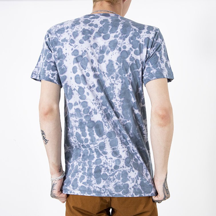 - Klasyczny męski t-shirt wykonany ze 100% bawełny. Model z krótkim rękawem oraz okrągłym dekoltem. Przednia część koszulki jest zdobiona nadrukiem. Efekt TIE-DYE. UWAGA: Dokładność pomiaru (+/-) 1 cm.