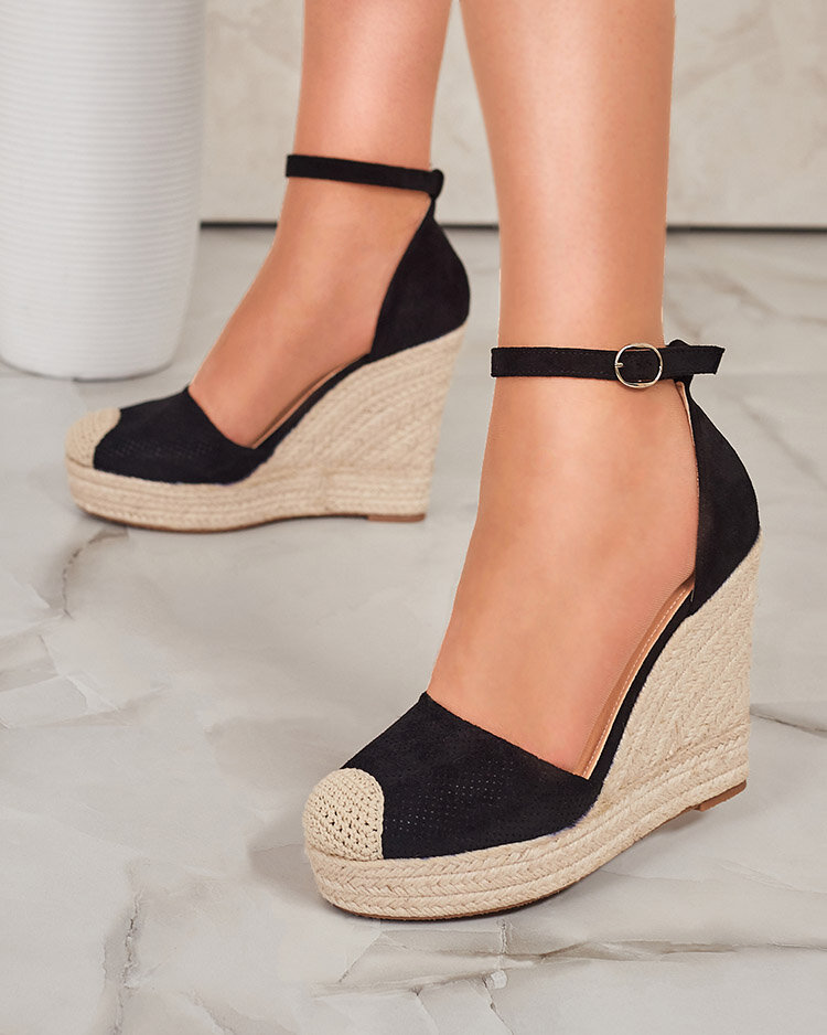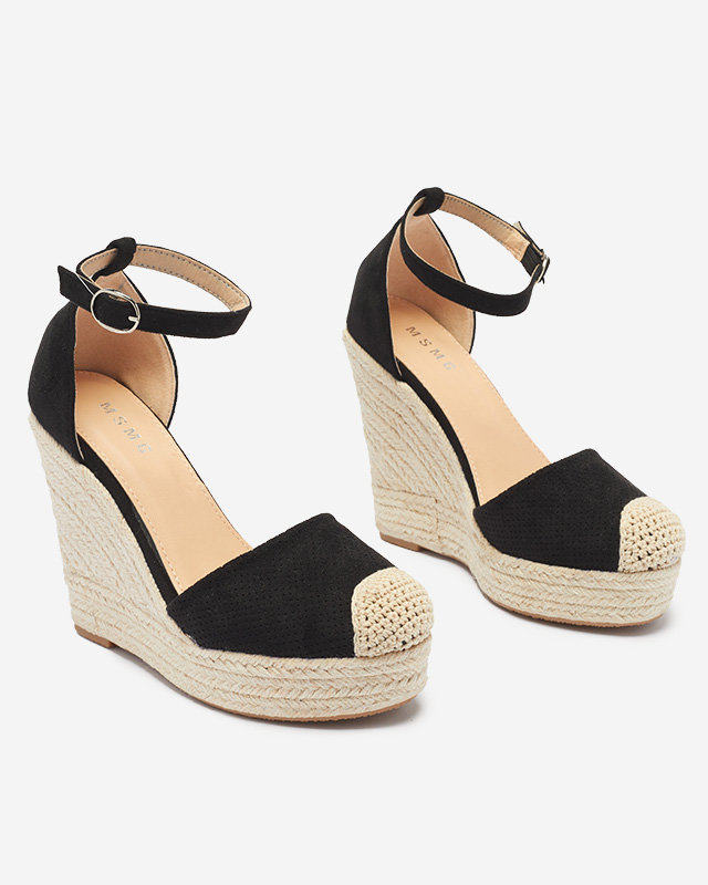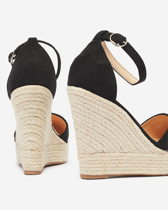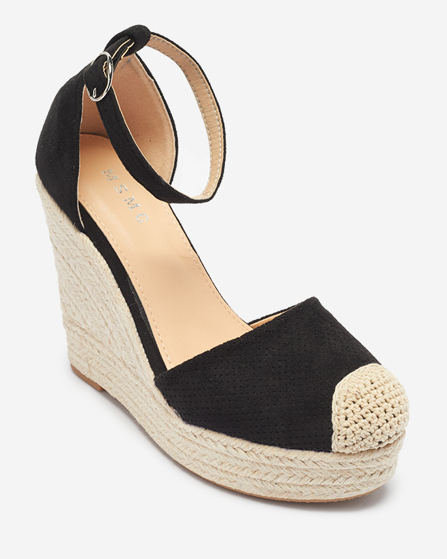 - Дамски сандали на платформа, изработени от еко велур с ажурен завършек. Моделът се закопчава с катарама около глезена, вътрешната част на стелката е подплатена с еко кожа. Подметката е украсена с шнур от юта. ЗАБЕЛЕЖКА: моделът е предпочитан за хора с тяс