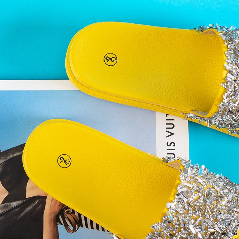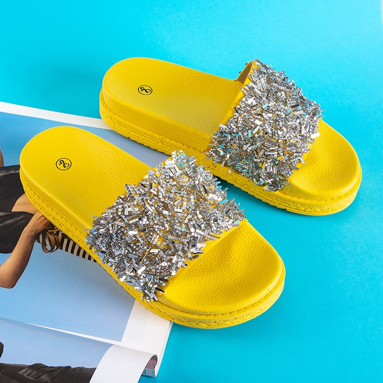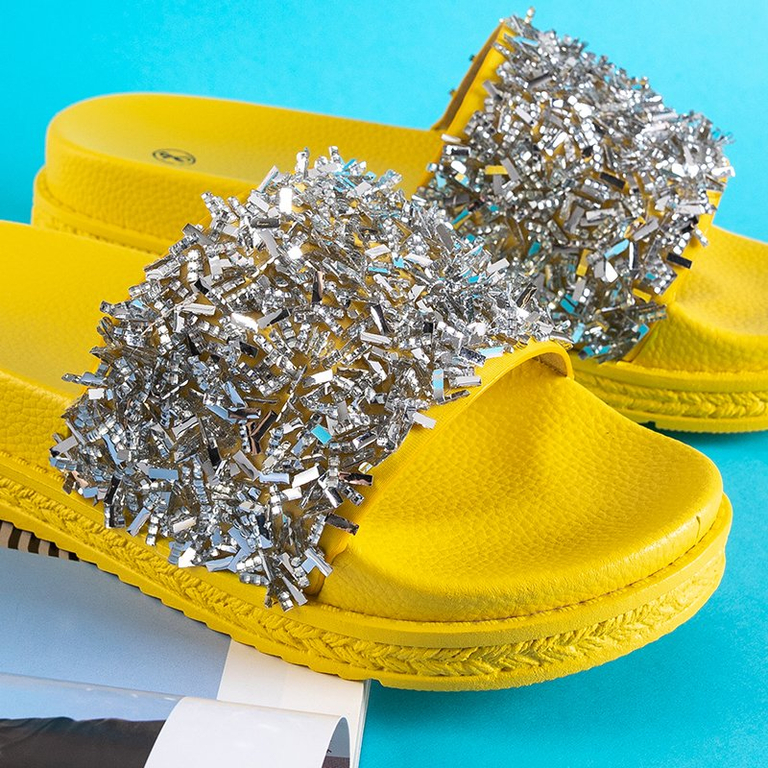 Żółte klapki damskie z cyrkoniami Onesti - Obuwie
