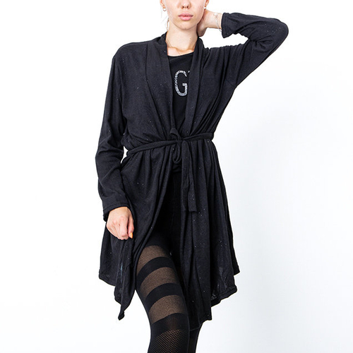 • Lekka damska narzutka wykonana z miękkiego materiału wiskozowego. Kardigan jest wiązany i wykończony brokatem. Idealna baza dla wielu casualowych outfitów! UWAGA: Dokładność pomiaru (+/-) 1 cm.