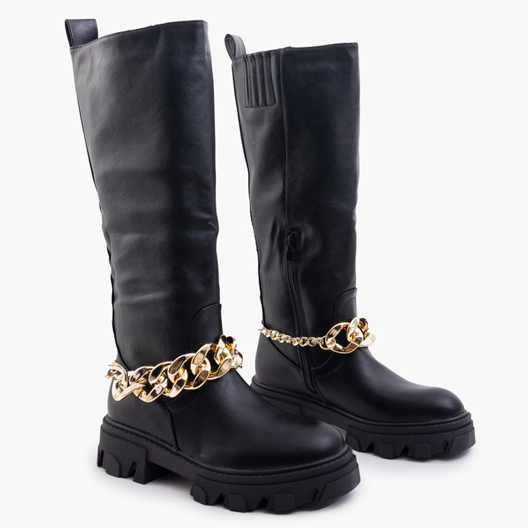 Damskie czarne kozaki z łańcuszkiem Sudzi- Obuwie