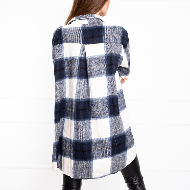 - Długa, ciepła koszula damska o luźnym kroju w kolorową kratę. Przyjemna w dotyku i wygodna. Model posiada dwie kieszenie. Super wybór na co dzień!
