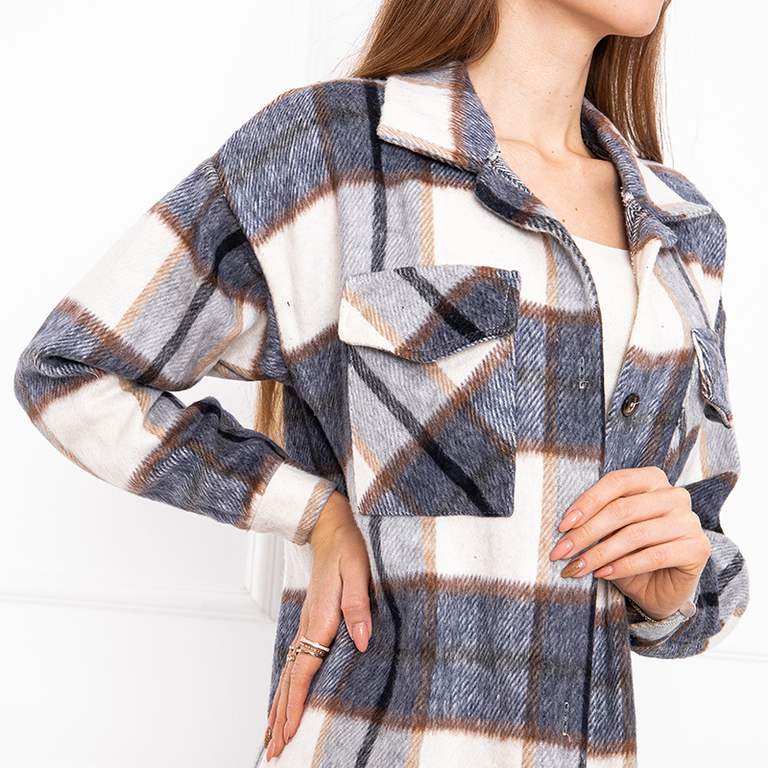- Długa koszula damska o luźnym kroju w kolorową kratę. Przyjemna w dotyku i wygodna. Model posiada dwie kieszenie. Super wybór na co dzień!
