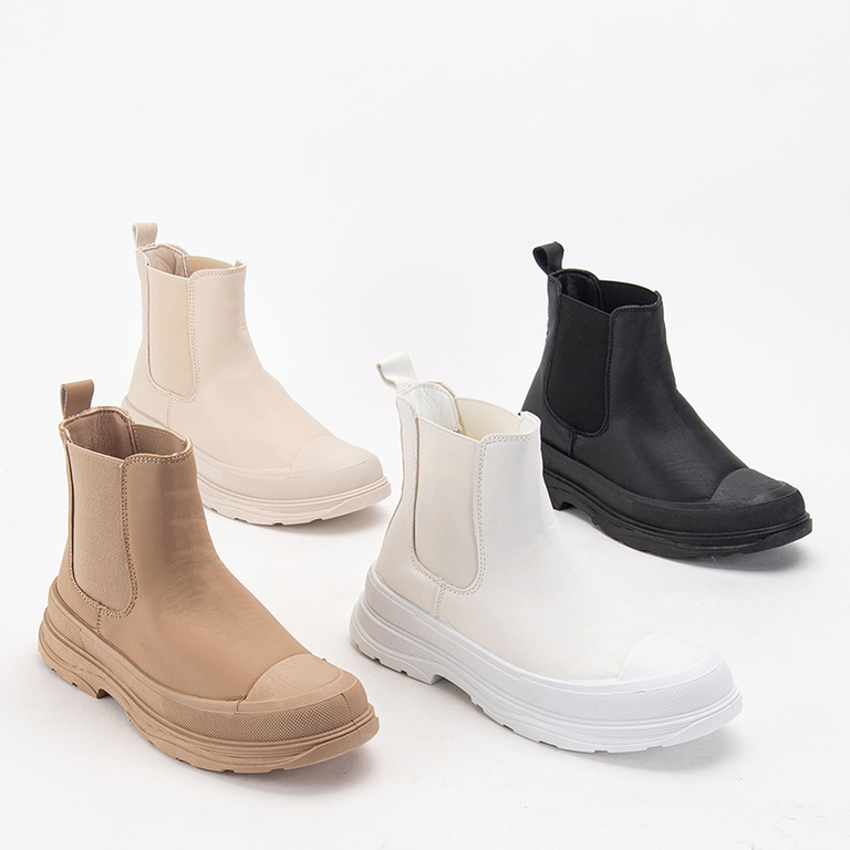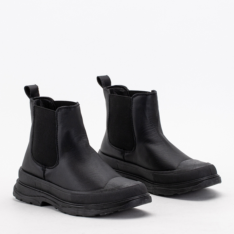 - Damskie botki przypominające trampki, wykonane ze skóry ekologicznej. Podeszwa i nosek gumowe, po bokach elastyczne wstawki, środek z delikatnym ociepleniem futerkowym. Idealne buty do jeansów! UWAGA: model posiada zagniecenia na materiale.