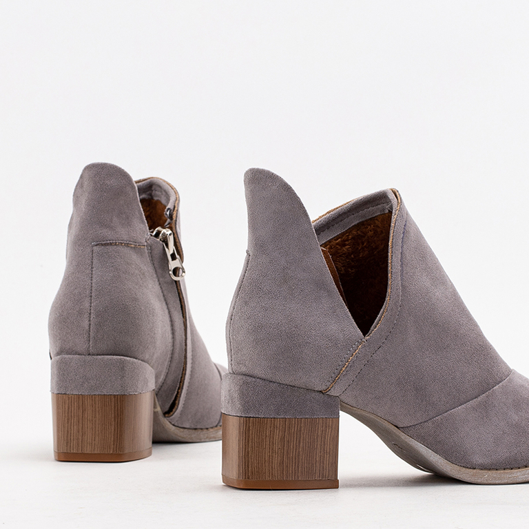 Szare damskie ocieplane botki na słupku Karela - Obuwie