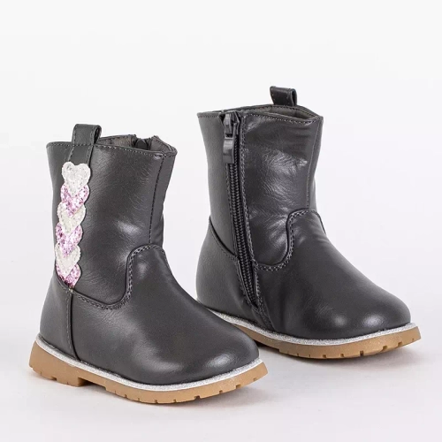 OUTLET Szare botki dziewczęce z ozdobną cholewką Nokimi- Obuwie
