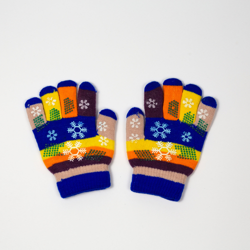 - Dziewczęce rękawiczki wykonane z miękkiego, przyjemnego materiału! Model zdobiony brokatem, kolorowymi wstawkami i nadrukiem śnieżynek. Idealne na spacery w chłodniejsze dni!