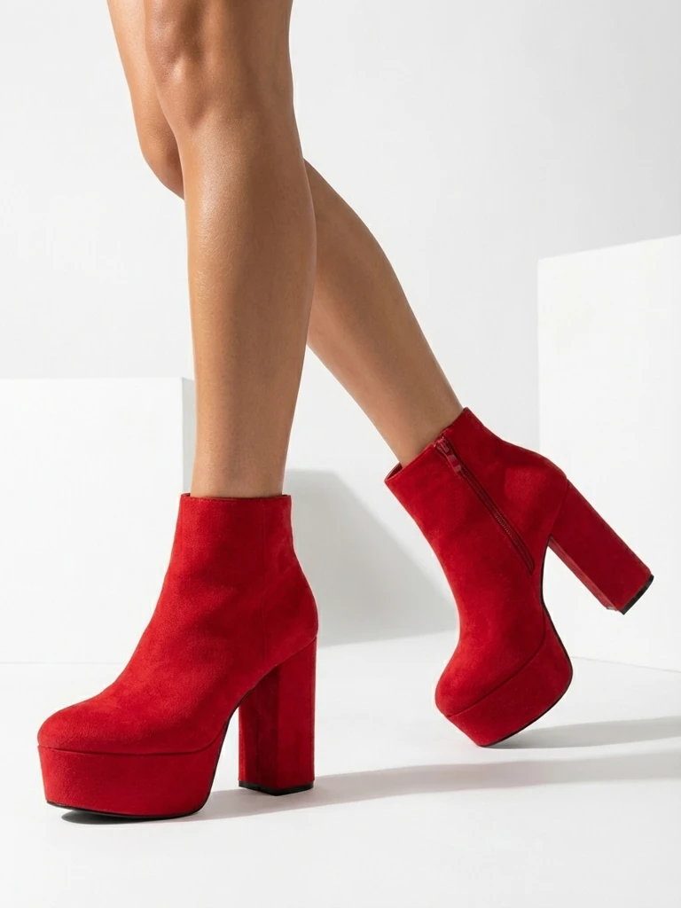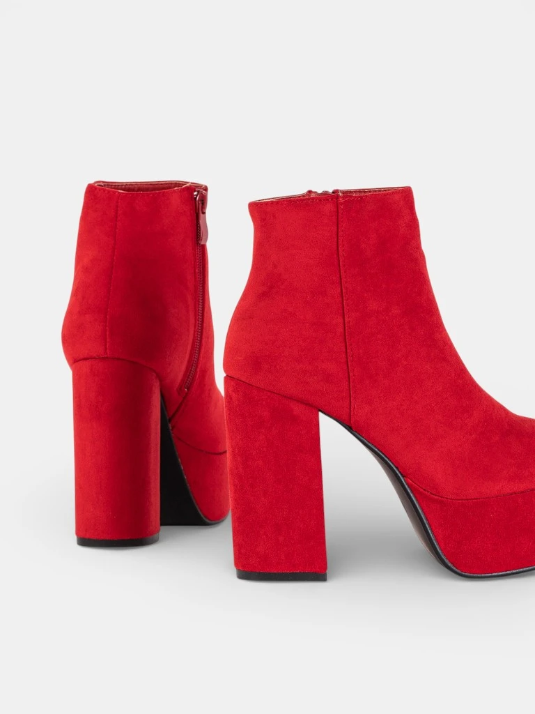 - Modne botki damskie na wysokim słupku i masywnej platformie. Cholewka z miękkiego zamszu ekologicznego. W środku posiadają delikatne ocieplenie futrzane. Po boku są zapinane na zamek błyskawiczny. CZERWONE BUTY ZIMOWE BOTKI OCIEPLANE ALLIA