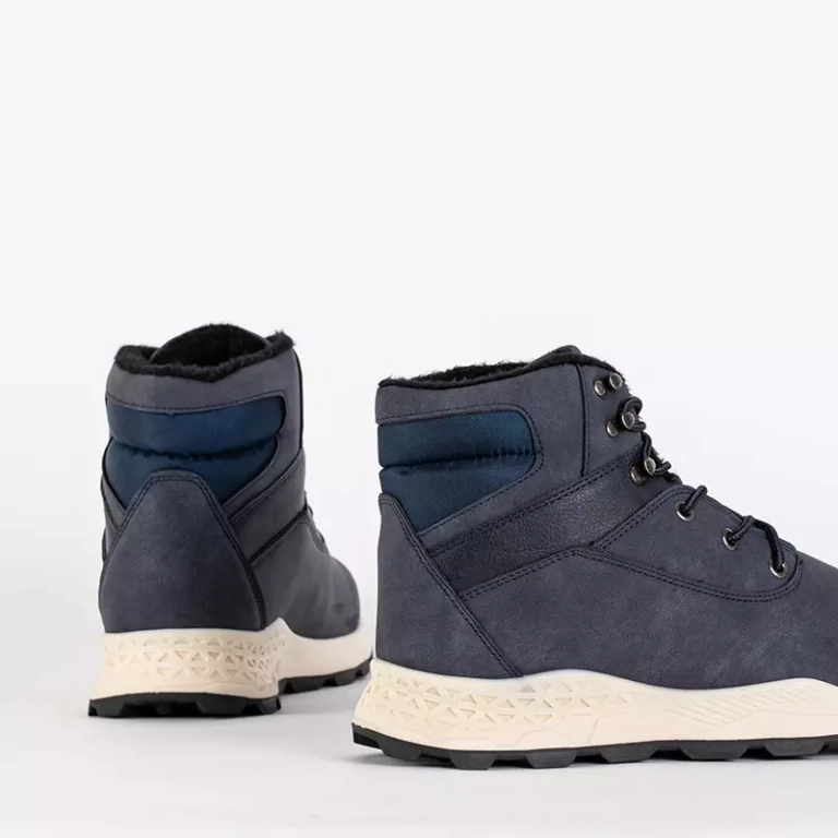 OUTLET Granatowe ocieplane męskie trapery Nuok - Obuwie