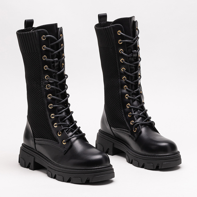 Ażurowe czarne damskie botki sznurowane Buhomi - Obuwie
