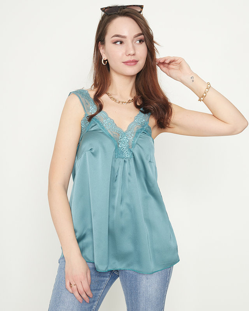 Damska koszulka na koronkowych ramiączkach w kolorze ciemnozielonym- Odzież