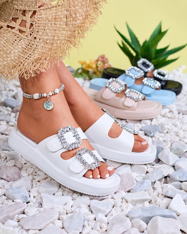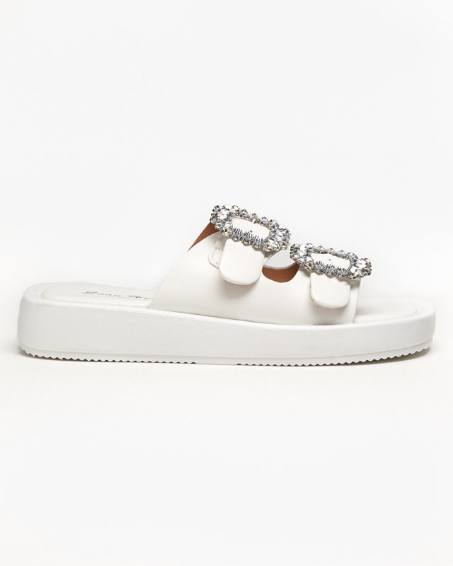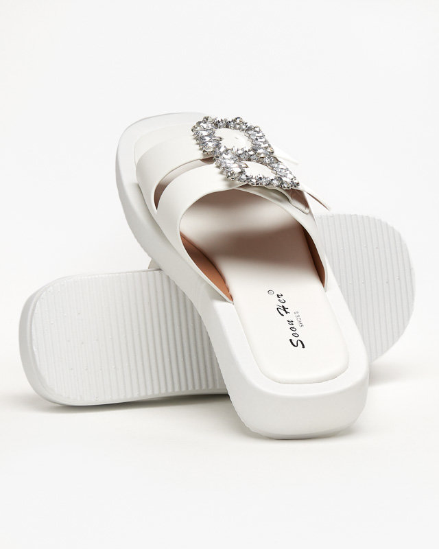 Białe klapki damskie z kryształkami Azazel - Obuwie