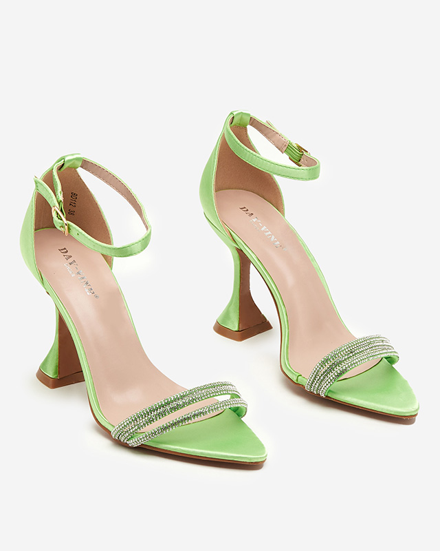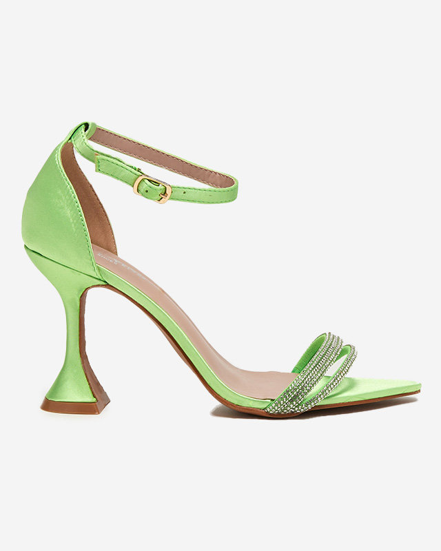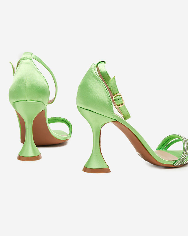Zielone damskie sandałki na szpilce z ozdobnymi cyrkoniami Manestri - Obuwie
