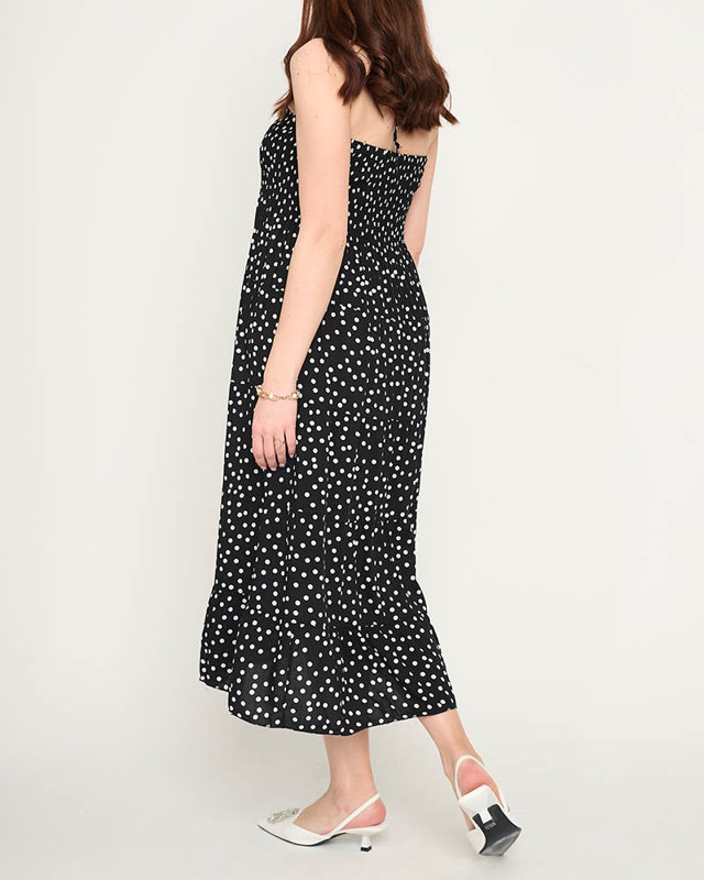 Czarna damska sukienka midi w groszki PLUS SIZE - Odzież