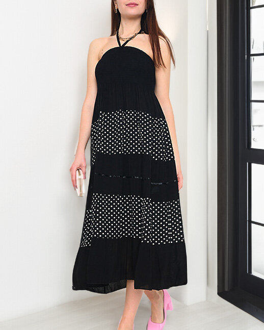Czarna sukienka w groszki PLUS SIZE - Odzież
