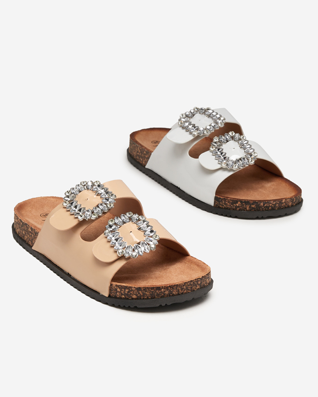 Beżowe damskie klapki ze zdobionymi klamerkami Olimika - Obuwie