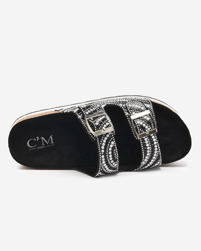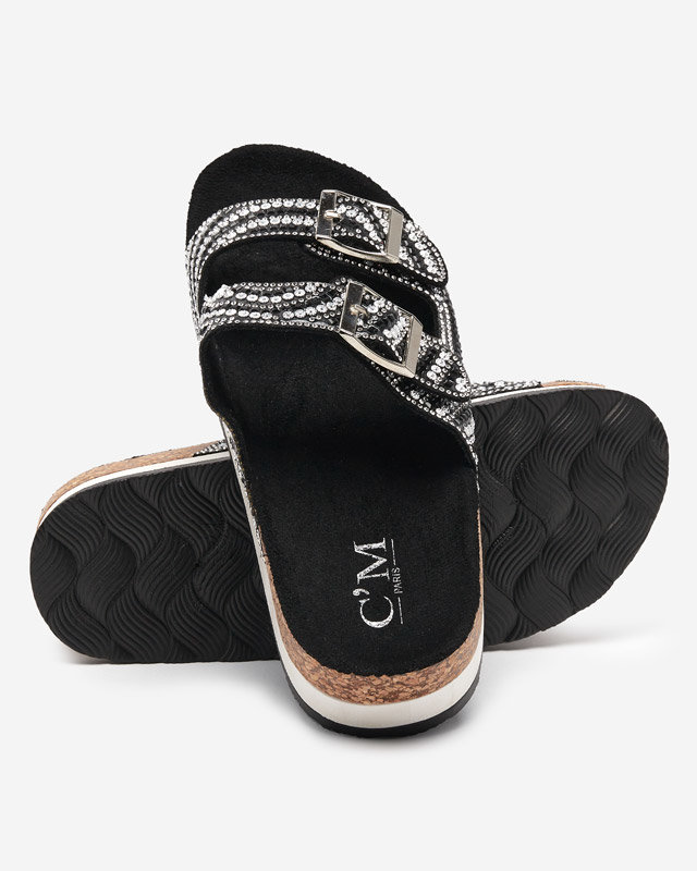 Klapki damskie z cyrkoniami w kolorze czarnym Laluda- Obuwie