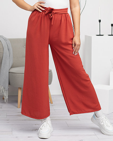 Damskie szerokie spodnie palazzo w kolorze czerwonym- Odzież