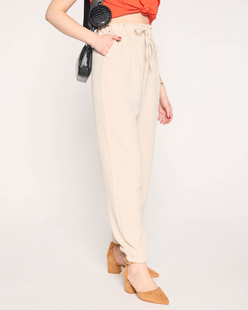 Materiałowe damskie spodnie w kolorze beżowym PLUS SIZE- Odzież