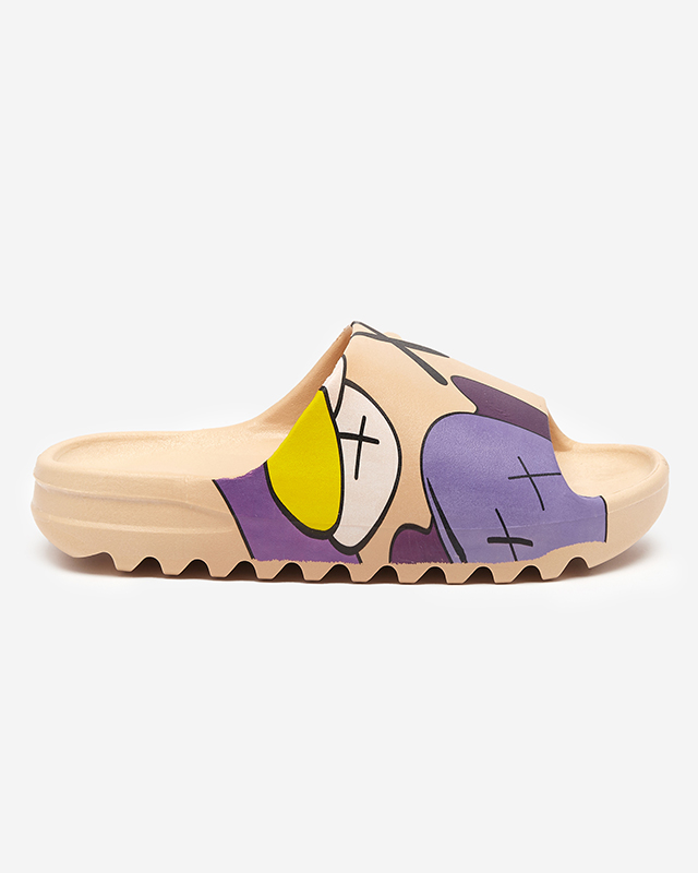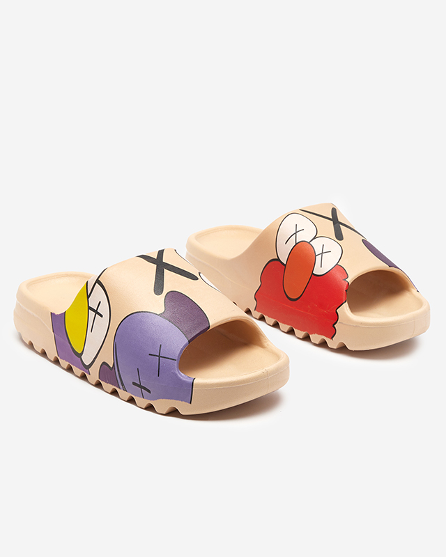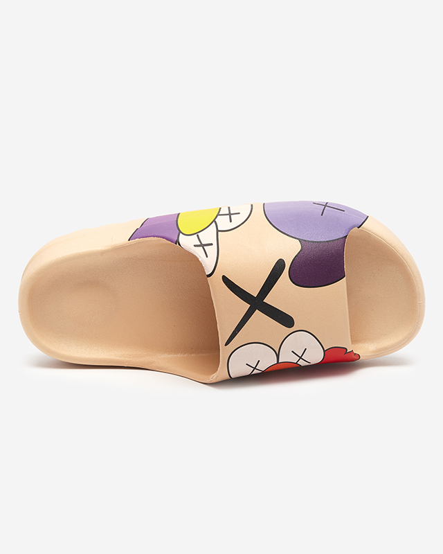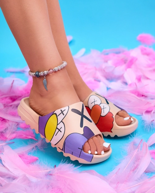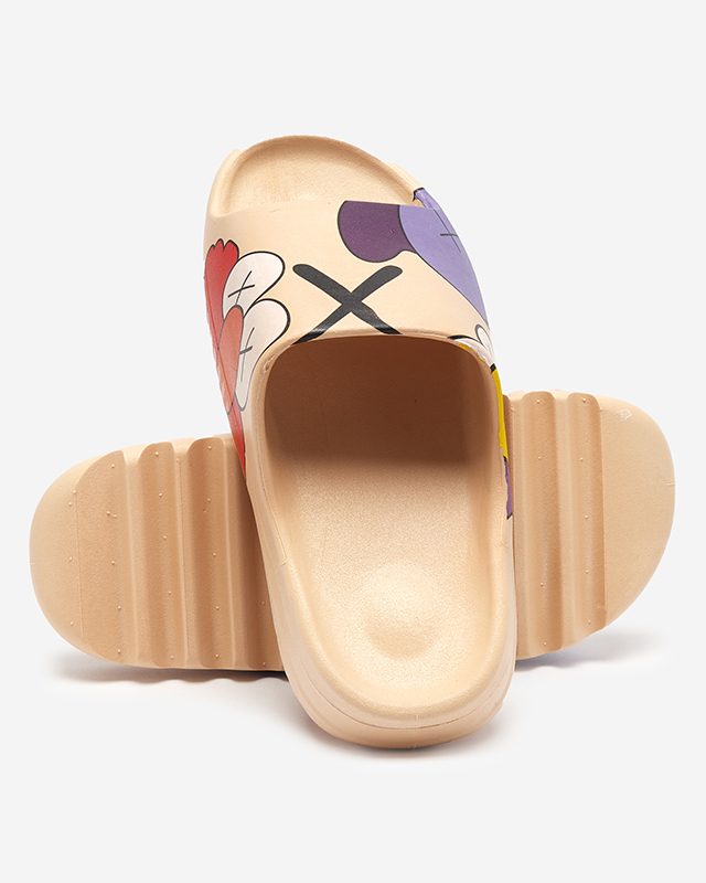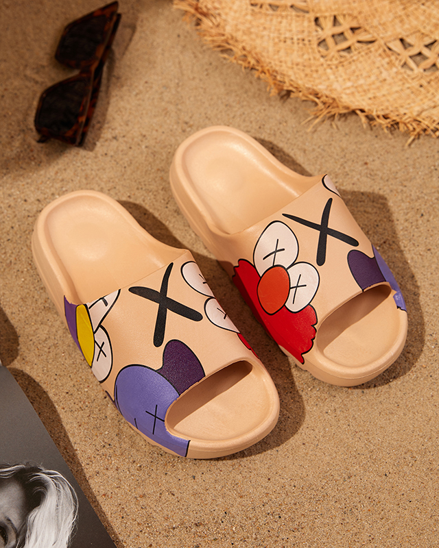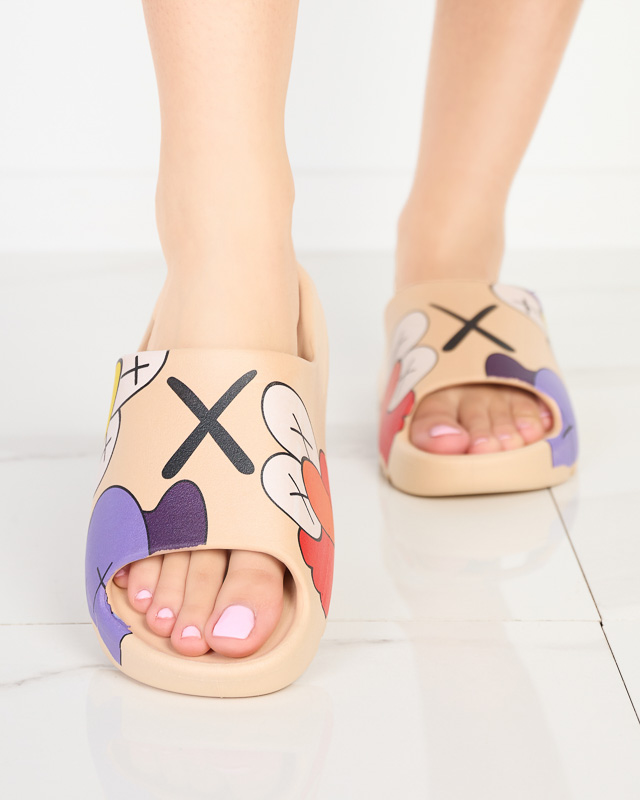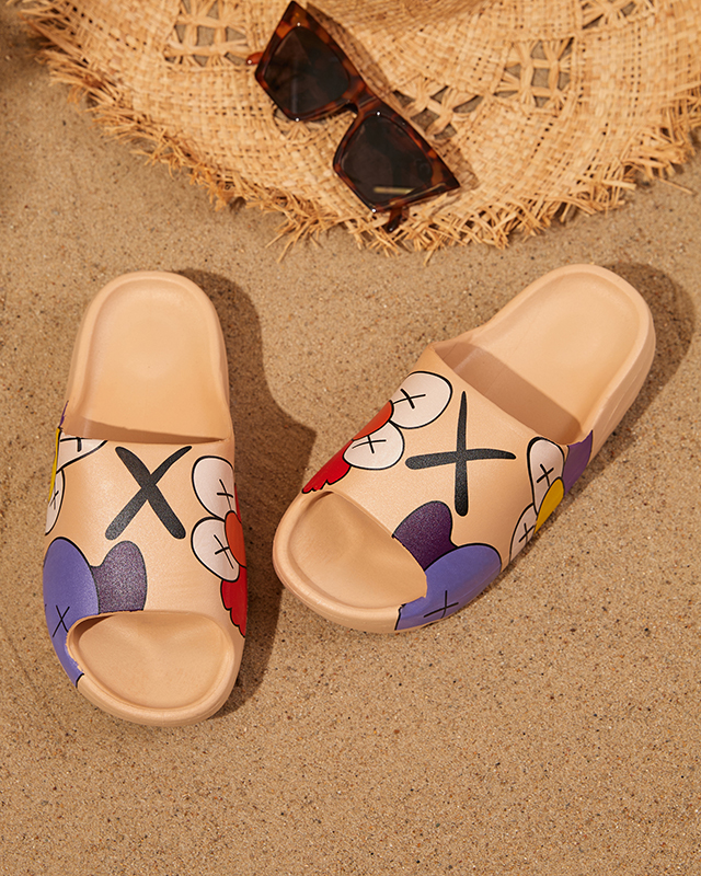 Beżowe gumowe klapki damskie z printem Pfizz- Obuwie