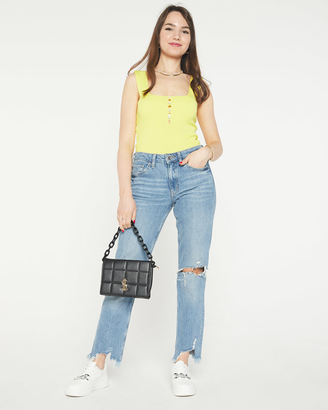 Żółty damski top z cyrkoniami a'la guziki- Odzież
