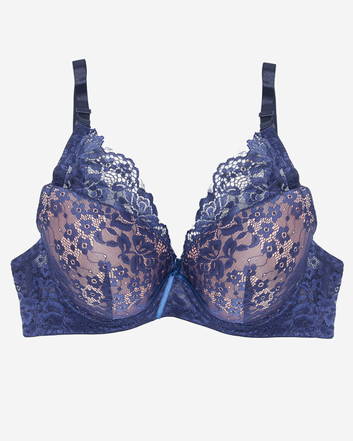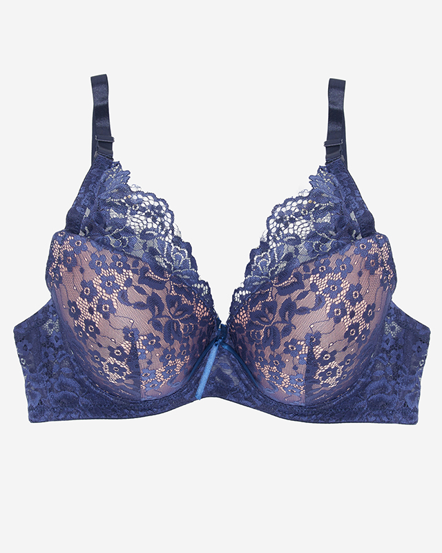 Różowy biustonosz z granatową koronką- Bielizna