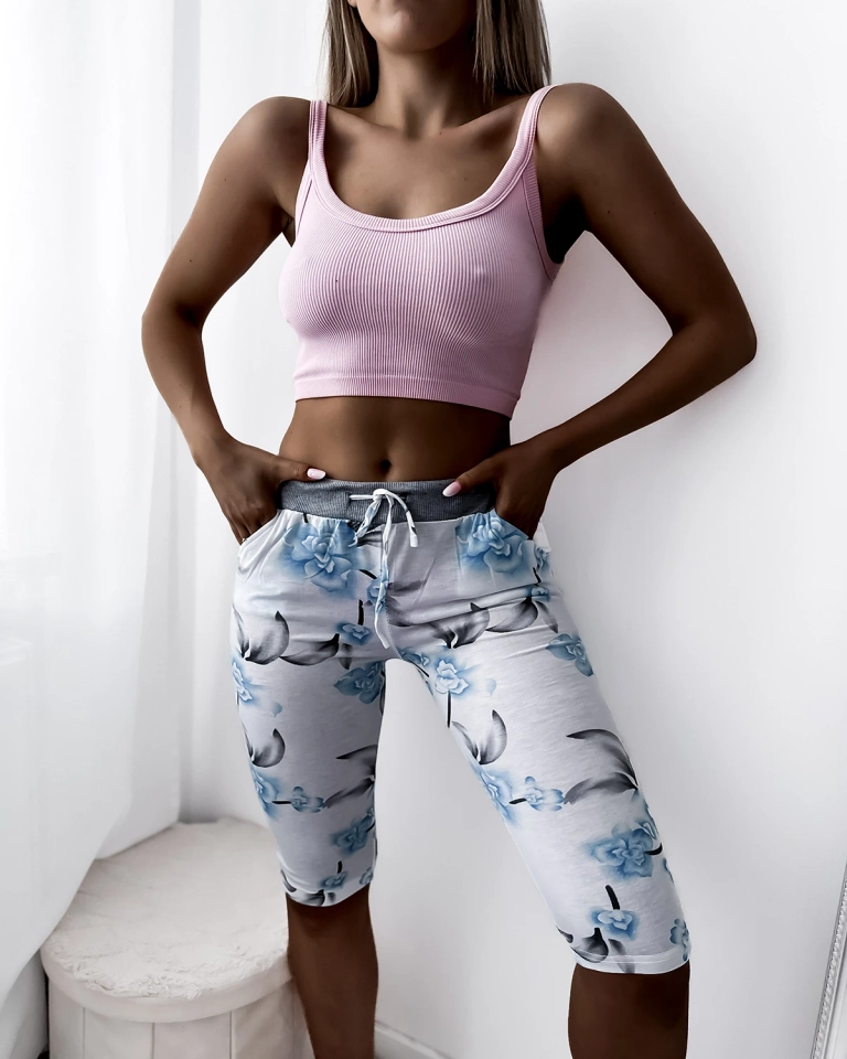 Białe damskie spodenki 3/4 z kwiatowym wzorem - Odzież