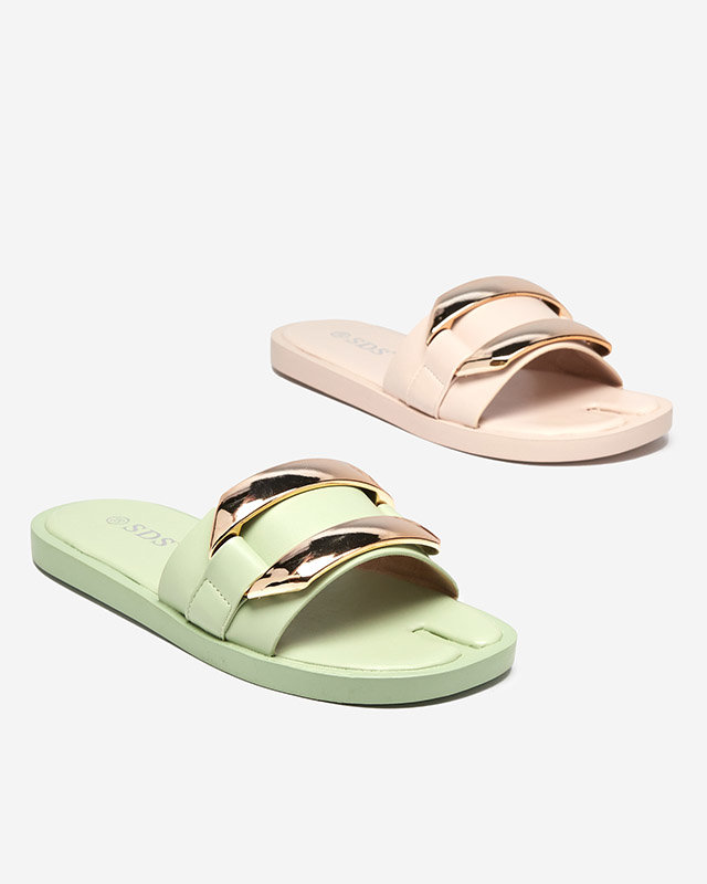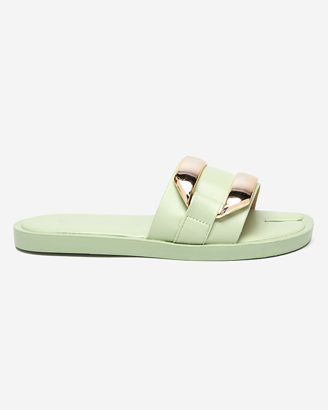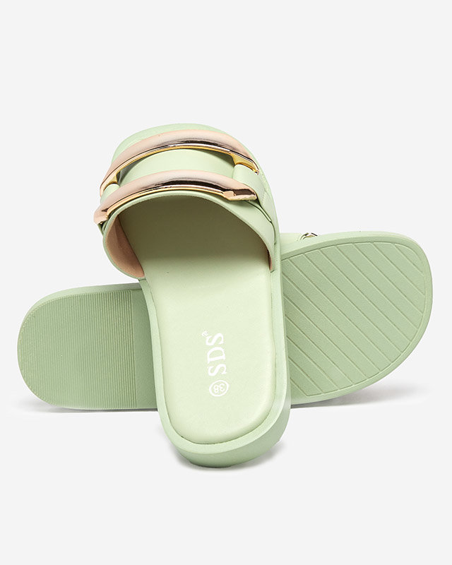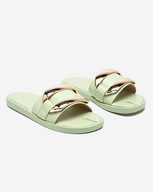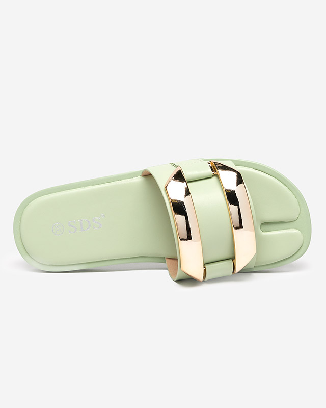 Zielone damskie klapki z dużą złotą ozdobą Kedino - Obuwie