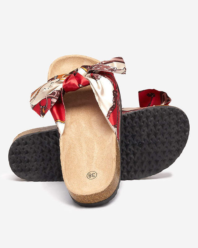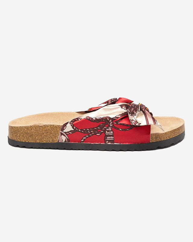 Czerwone damskie klapki z tkaninową wstążką Laneso - Obuwie