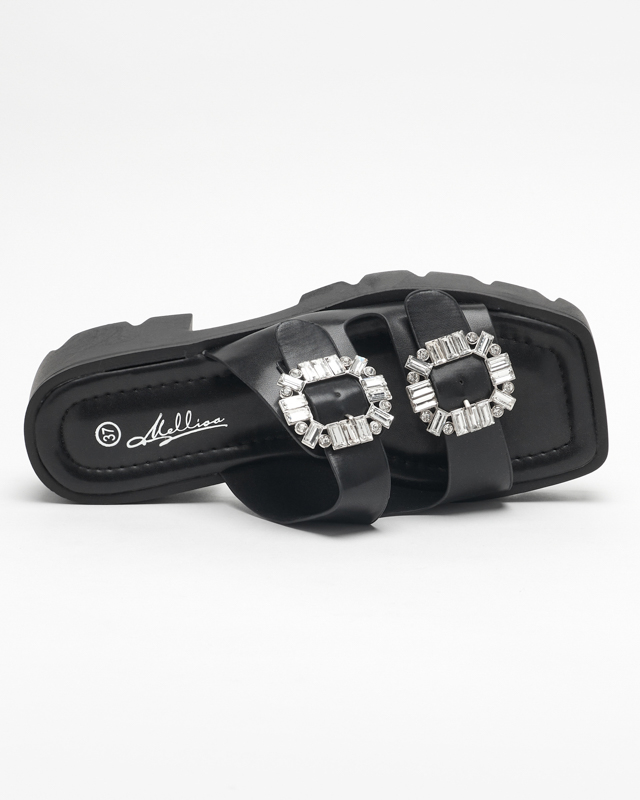 Czarne klapki damskie z ozdobą z cyrkonii Sadoh- Obuwie