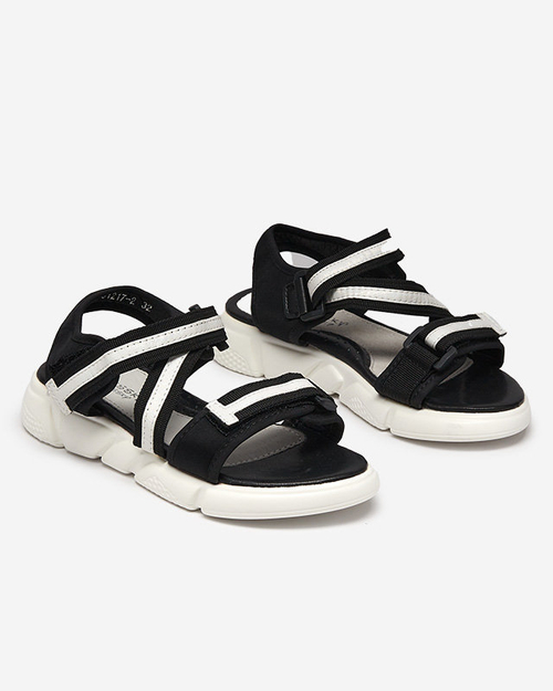 Czarno-białe dziecięce sandałki zapinane na rzepy Modis - Obuwie