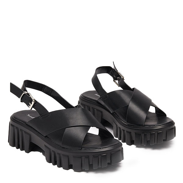 OUTLET Czarne damskie sandały na masywnej podeszwie Otida - Obuwie