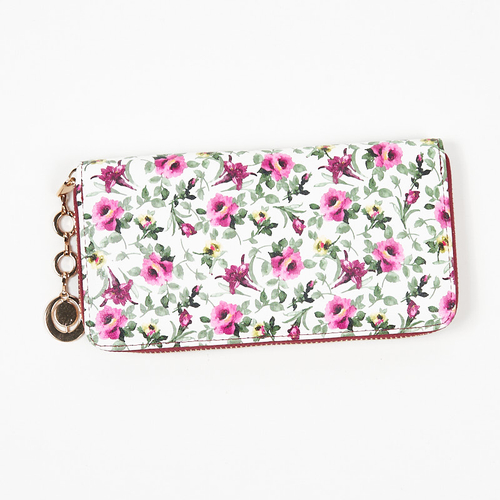 - Duży damski portfel wykonany ze skóry ekologicznej w kwiecisty wzór. Produkt jest zapinany na zamek błyskawiczny.