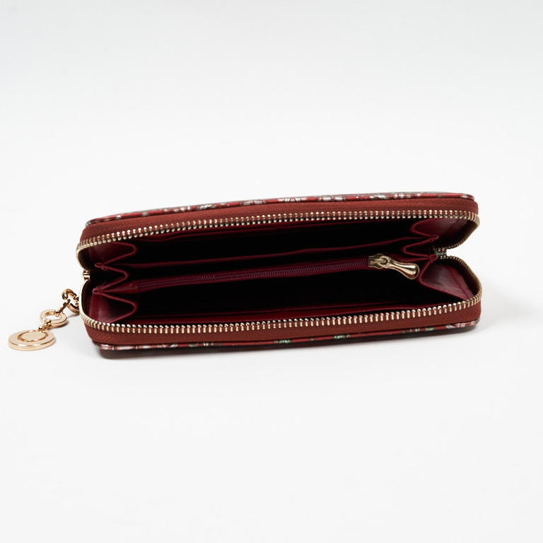 Duży bordowy damski portfel z kwiecistym wzorem - Akcesoria