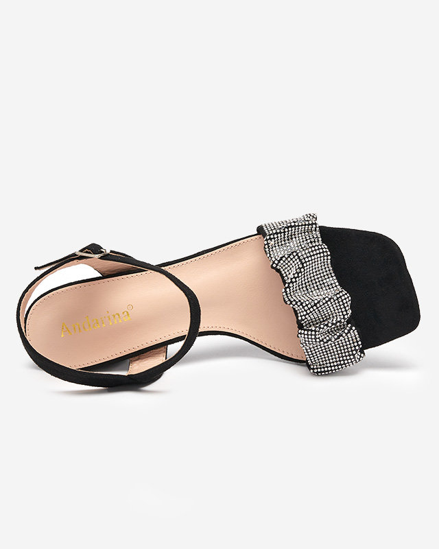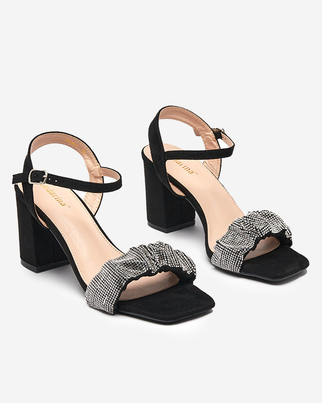 OUTLET Czarne damskie sandałki na słupku z cyrkoniami Triesta- Obuwie