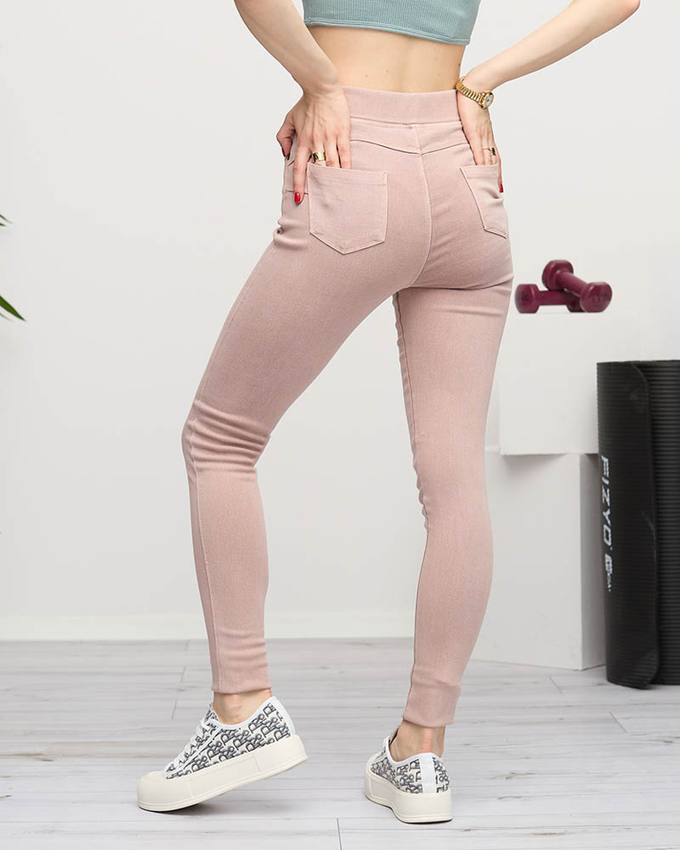 - Damskie spodnie z wysokim stanem typu tregginsy, wykonane z rozciągliwego materiału. Model posiada gumę w pasie, 4 kieszonki. Must have w szafie każdej kobiety! UWAGA: Dokładność pomiaru (+/-) 1 cm.