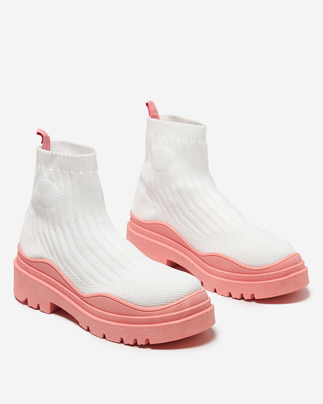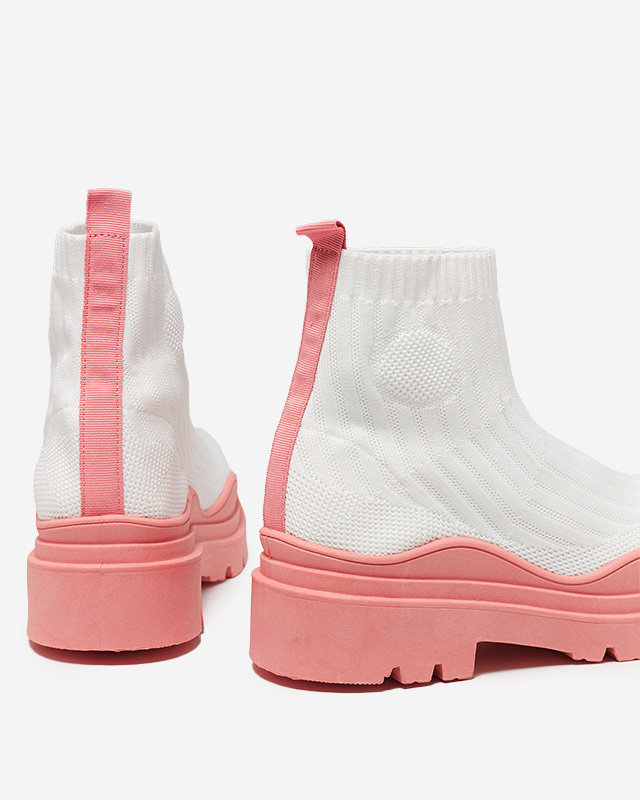Botki damskie na grubszej podeszwie w kolorze biało- różowym Korlico- Obuwie