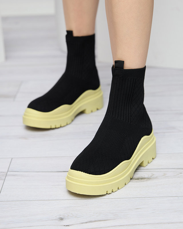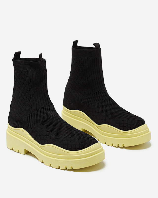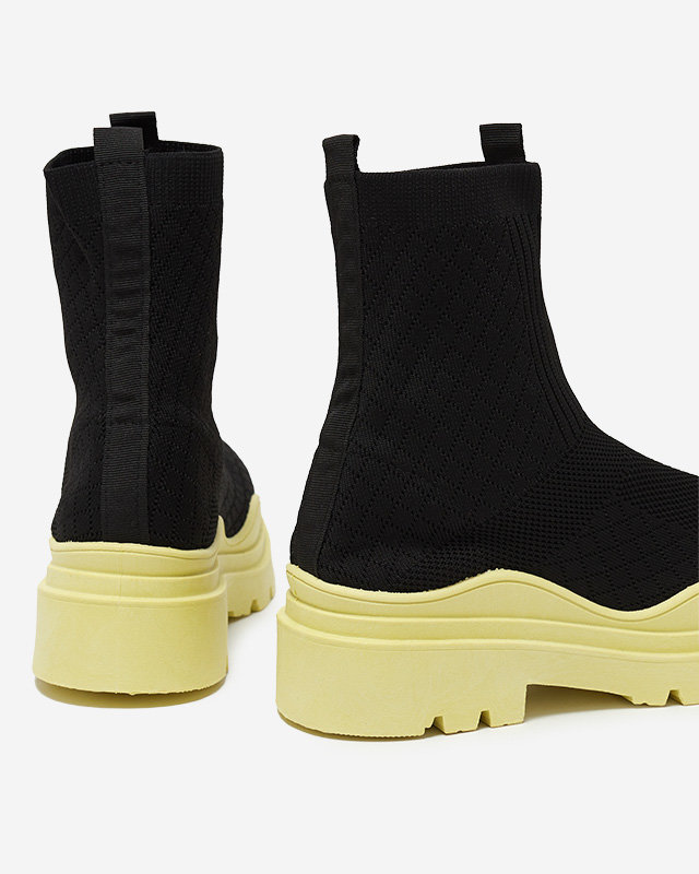 Czarno-żółte botki damskie na płaskim obcasie Seritis - Obuwie
