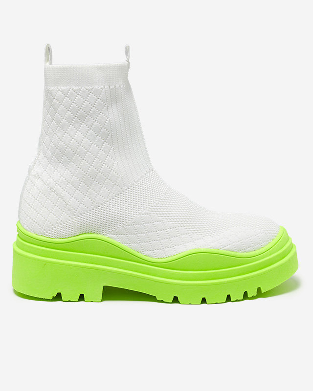 Biało-zielone botki damskie na płaskim obcasie Seritis - Obuwie