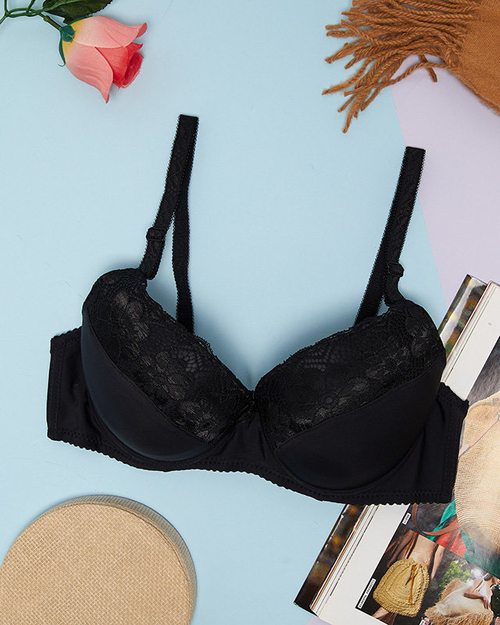 Черен дамски сутиен с дантелена вложка - Бельо