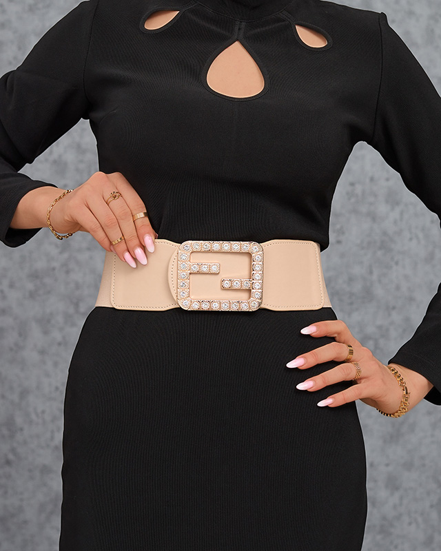 Дамски бежов широк ластичен колан с цирконий - Аксесоари