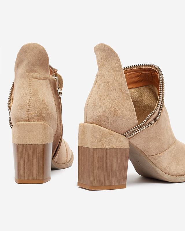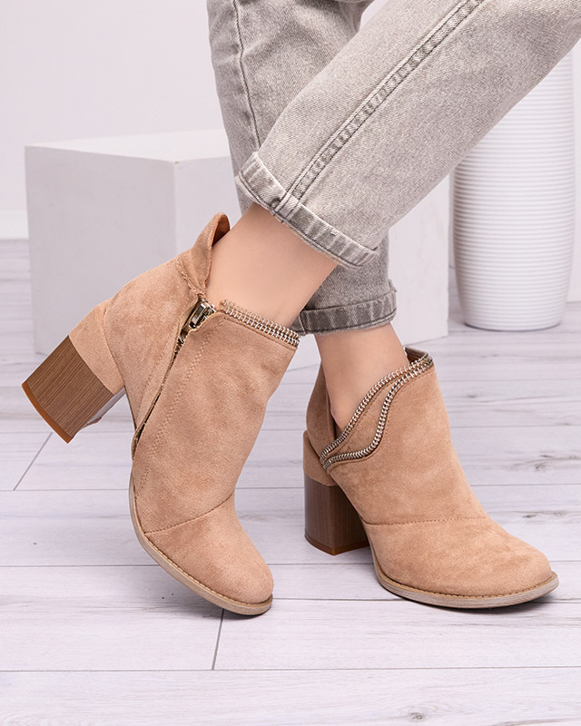 Светло кафяви дамски изолирани боти на кол Mukis - Обувки