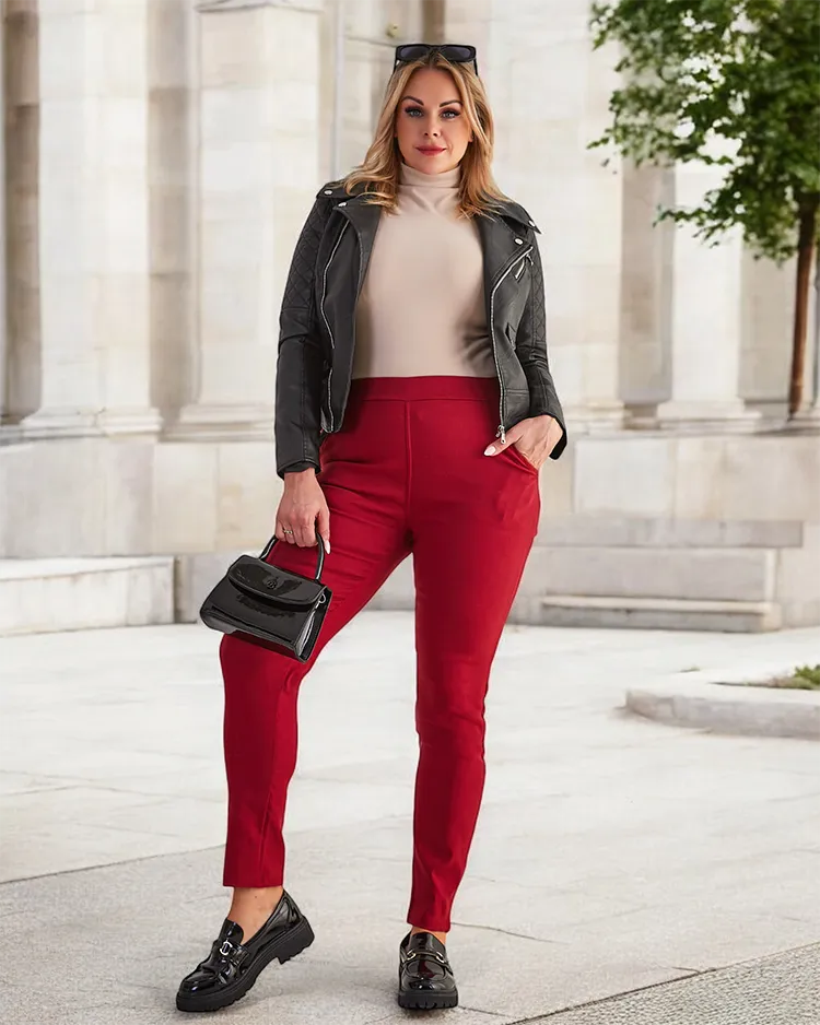 Дамски изолирани дамски панталони в бордо - Облекло